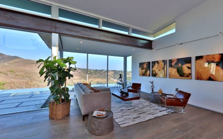 A new stunning architectural home designed by local designer/builder Michael Torrey of Avalon Construction Corp with unique expansive interior exterior space for indoor outdoor living, surrounded by mountain & ocean views in this quiet equestrian neighborhood.
