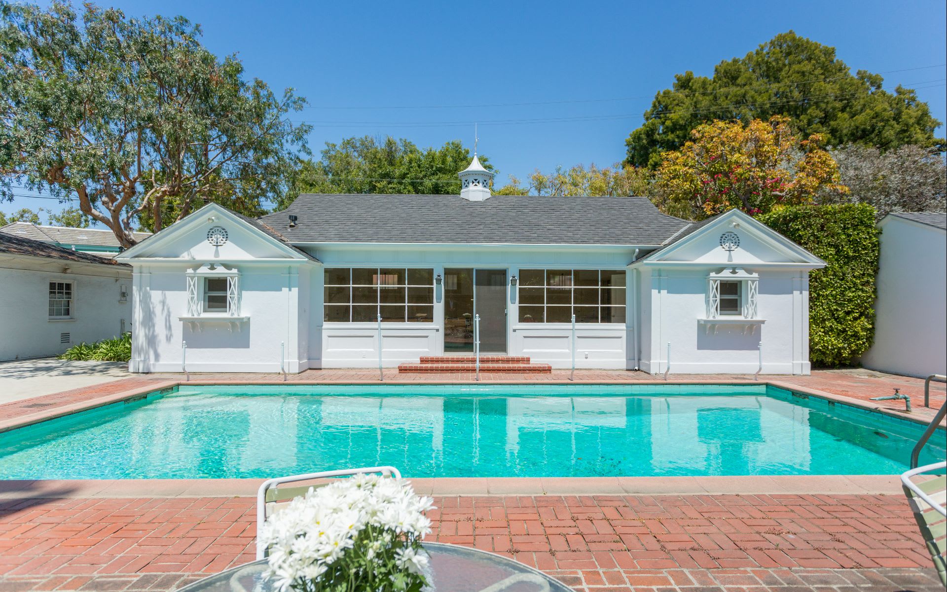 Stately traditional set on approximately 18,000 sqft. of park-like grounds in the highly sought-after West End of the Beverly Hills Flats. With character and street presence, this two-story home features three bedrooms plus a maid’s room, five baths, an elegant living room, library/den, breakfast room, and dining room. The stunningly expansive yard features large grassy areas, a pool and pool house with dual bathrooms and closets as well as tremendous entertaining spaces for private parties, play, and gardening. Conveniently and peacefully located on the Camphor tree-lined Trenton Drive and primed for the creative palate of its next owner. A rare opportunity not to be missed.