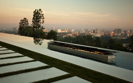 With a premier address in lower Bel-Air and peerless amenities that include a vast infinity pool overlooking the entire Los Angeles basin, this 15,000-sqft masterpiece is a showcase of state-of-the-art design and architectural élan. A dramatic entry through 12-ft-high gates leads to a long private driveway and motor court that introduces the residence. Inside, the interiors are replete with 16-ft ceilings and such finishes as book matched marble walls and Italian fixtures. An baronial grand hallway links all of the public rooms, creating superb flow for entertaining. The main floor features an over-sized living room, elegant dining room, screening room, wood-paneled library, wine cellar, and gourmet chef’s kitchen. A soaring sculptural staircase climbs to reveal five guest bedrooms, a gym, and luxurious master suite. An attached guest house completes this rare opportunity.