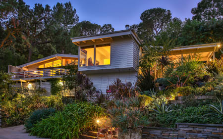 A Mid Century Post and Beam above Mulholland up a long gated private drive.