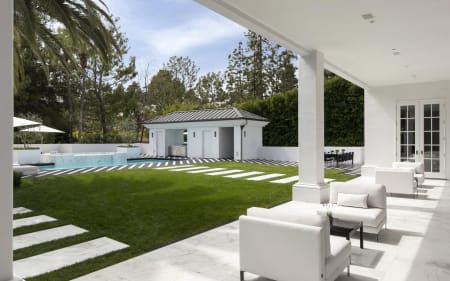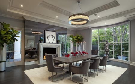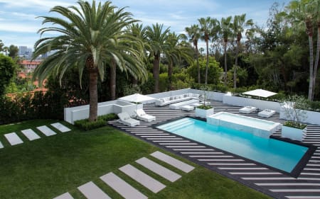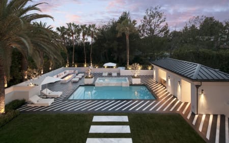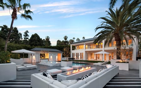 Immediately adjacent to world famous Beverly Hills Hotel. Walk to The Polo Lounge for breakfast. Renovated in 2015 – French Modern Estate dazzles in high style and state of the art technology. Open floor plan and vast public rooms for entertaining. Main house features formal Living Room with 10 sets of French Doors, paneled Library, lavish formal Dining Room, Gourmet Kitchen imported from Italy, family room and cocktail bar w/ display wine cellar. Luxurious Master Suite offers dual baths overlooking large terrace w/ tree top views. Extravagant walk-in closets fitted in the finest Italian cabinetry. Guest House includes Cinema for 20 guests, Miele equipped concession bar, and spacious gym, staff suite and 4 car garage. Grounds include motor court, porte-cochere, pool with pool house, grill, and black & white marble pool surround. Feel the pulse of the city in an unrivaled Beverly Hills location. Shown only to pre-qualified Buyers.