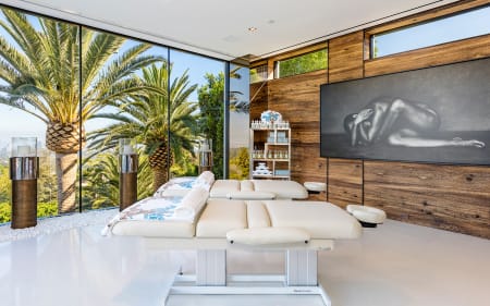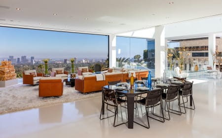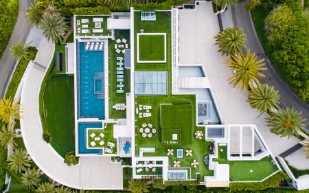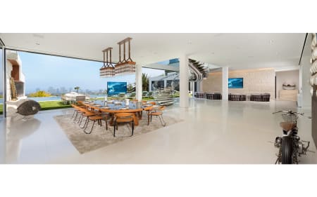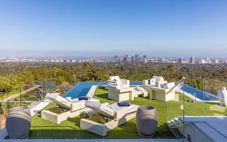 The pinnacle of splendor & luxury. 38k sq ft new construction home +17k sqft of entertainment decks, 2 master suites, 10 over-sized VIP guest suites, 21 luxurious bathrooms, 3 gourmet kitchens, 5 bars, massage studio/wellness spa, state-of-the-art fitness center, 85-foot glass tile infinity swimming pool, 40-seat 4K Dolby Atmos Theater, 4 lane bowling alley/lounge, auto gallery, outdoor pop-up theater, 2 fully-stocked champagne/wine cellars, the most advanced home tech system in the world. Astonishing array of amenities & bespoke items from around the world, 4 meticulously curated levels, indoor/outdoor nirvana enhanced by 270-degree unobstructed views spanning from the mountains all the way to the ocean and the incredible Los Angeles skyline in-between.