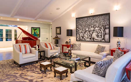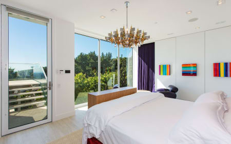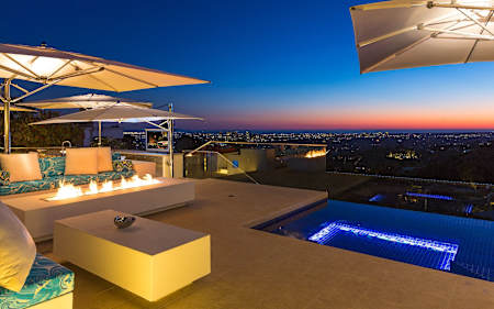 5 bathroom Hamptons Style compound w/ spectacular Ocean & City views. No expense spared at this 5 star luxury home. Designer gourmet kitchen. High ceilings. All public rooms open to the sumptuous back yard & view. Outdoor entertaining all year round in a glamorous & breath taking setting. Multi-million dollar separate steel & glass guest house & bath (included in bed & bath count). Swimmers Pool & infinity spa. This is a perfect secure private gated retreat.