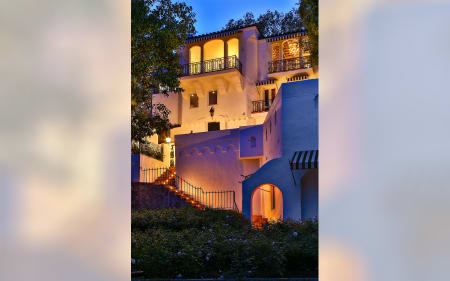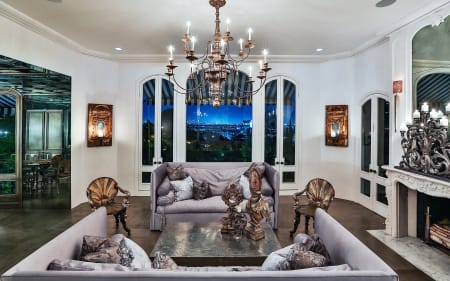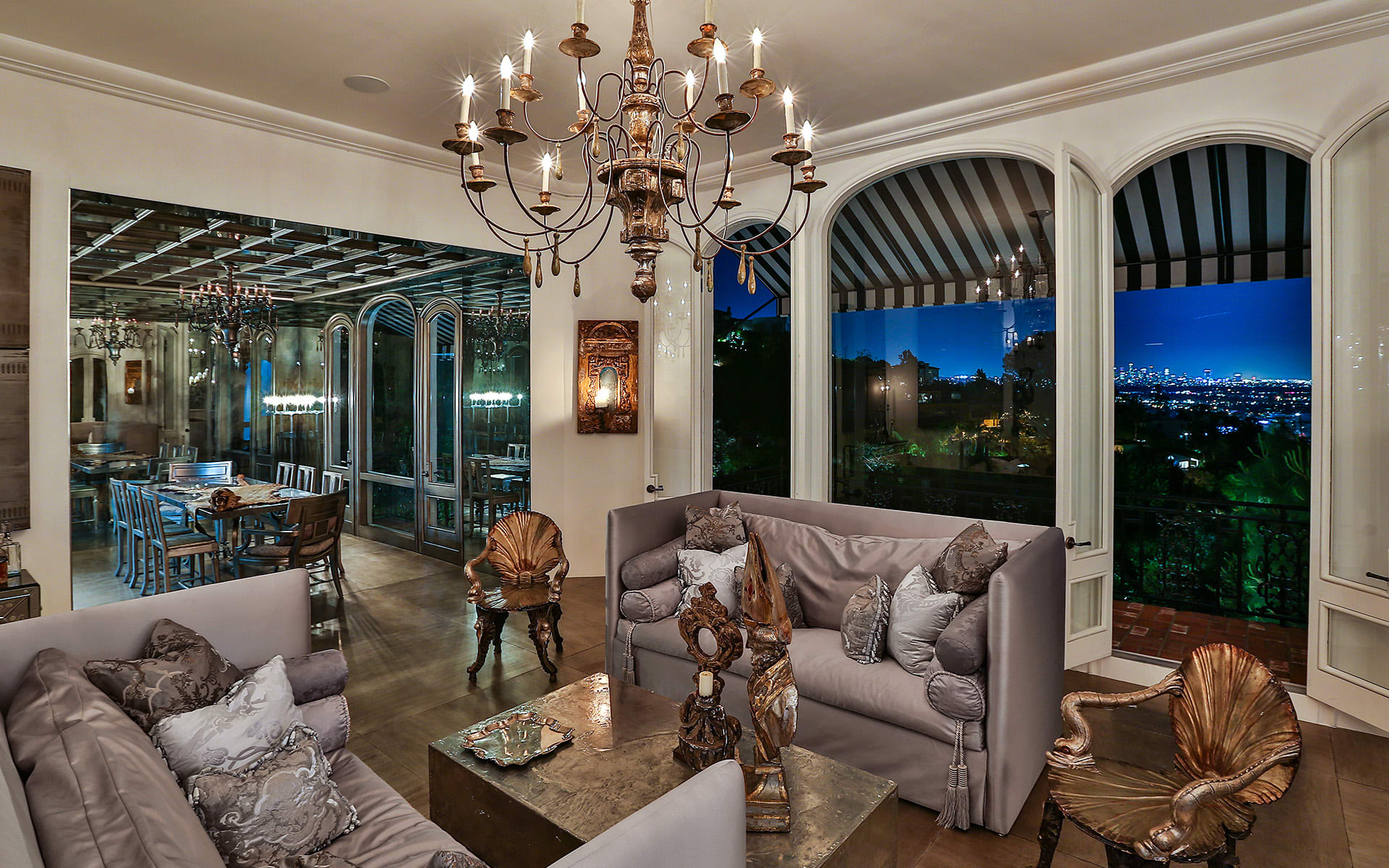 Seller says sell now after reducing it $2,000,000 from its initial list price. This architecturally significant John Woolf Hollywood Regency has been completely restored w/ stunning views of downtown Los Angeles. Enter the main living area w/ silver-leafed wood floors, a marble fireplace, and a 19th-century chandelier. The professional grade kitchen is equipped w/ two Le Cornu ranges, two stainless steel sub-zeros, and marble counters. The entire second floor is a master suite including a master retreat w/ terrace, two separate master baths, one w/ a stainless steel tub & fully outfitted closets. The gym is completely done floor to ceiling in Carrara marble and granite w/ a full bathroom and sauna. Guest suite attached to the garage w/ its own bathroom. Smart home technology by Crestron which controls climate, alarm, phone, all media, and cameras. This home is an entertainers dream w/ views from the pool and cabana area and plenty of gated parking.